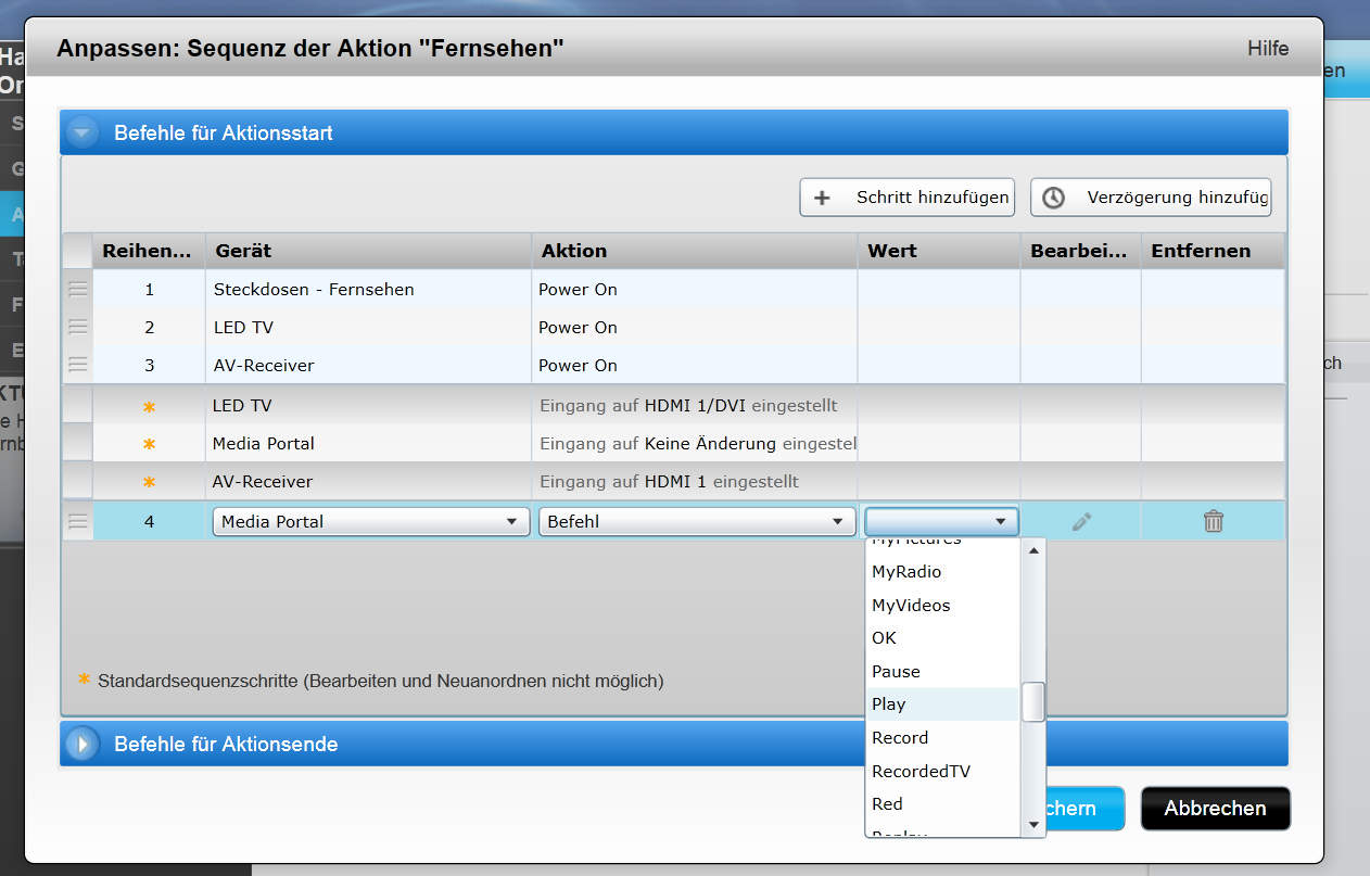 Erst mal danke an alle für eure Hilfe. Die Einschaltaktion scheint nun auch wie gewünscht zu funktionieren, leider macht mir das ausschalten Probleme. Der TV wird nicht ab geschaltet. Es läuft alles durch der TV ist immer noch an, bis die Sequenz bei den Steckdosen ist und diese ausschaltet. Hab nun ...