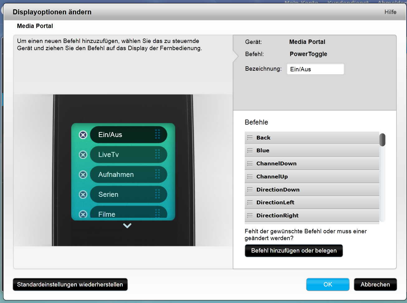 Das werde ich tun. Nutze Win und MediaPortal. Jetzt hab ich das ganze aber mal so konfiguriert wie oben beschrieben. Mit dem Anlernen des Buttons, der jetzt auch zu sehen ist, da er nicht Power heißt.