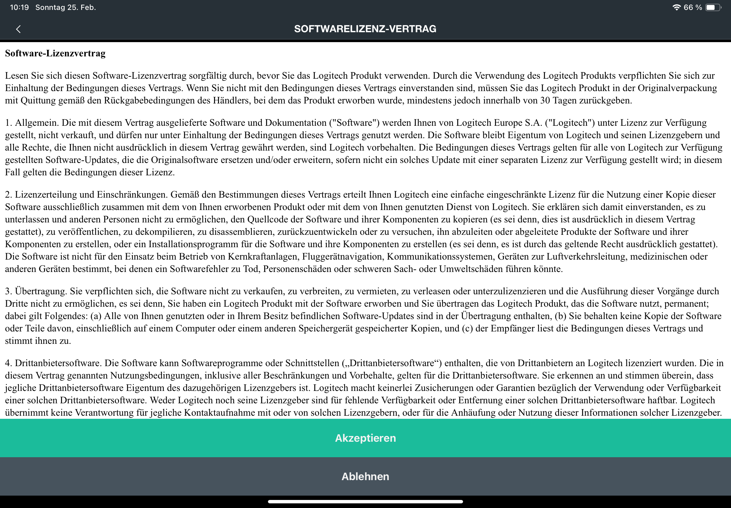 Erstmal kennt die Software meinen User nicht obwohl ich seit Jahren einen Logitech User habe und der funktioniert ja auch in der App auf dem iPad.