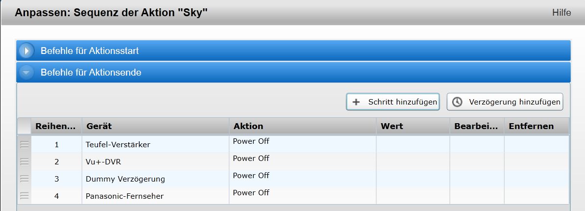 hab beim abschalten in einer Verzögerung von 3 Sek hinzugefügt , nun steht das in der eisten Zeile aber lässt sich nicht an die gewünschte Posotion verschieben (Harmony App Windows)