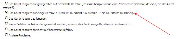 Gerät reagiert auf Befehle nicht/zu lang (Sende-Wiederholung)