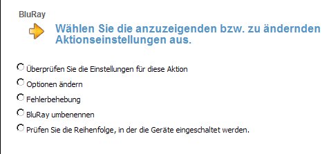 Optionen der Aktion: (Selbsterklärend) Fehler-Behebung: Verzweigt in den Punkt Optionen der Aktion jedoch mit der abschliessenden Frage, ob die Harmony aktualisiert werden soll.