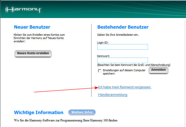 es soll ja vorkommen, das man seine Login-ID und sein Passwort zum Harmony-Konto vergessen hat.