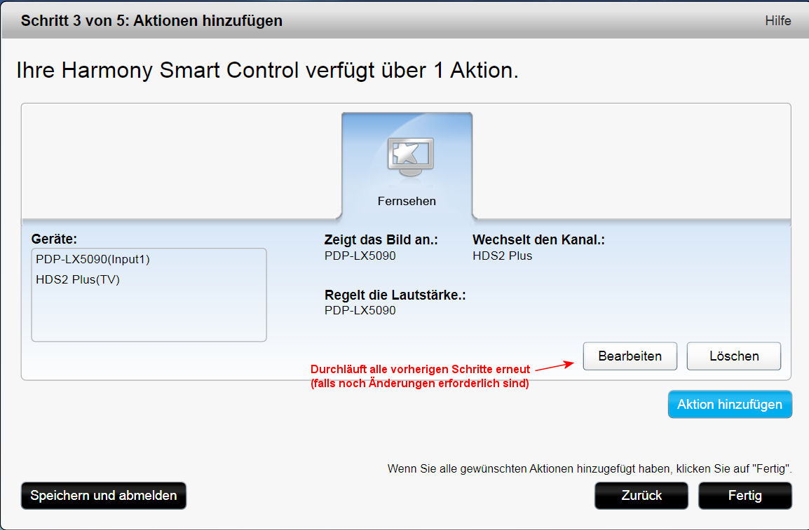 Bei der Ersteinrichtung wird immer die Aktion "Fernsehen" zwangsweise angelegt.
