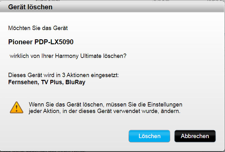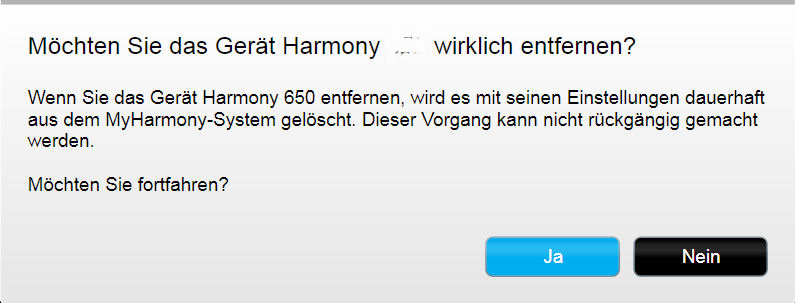Wer jetzt auf "Ja" klickt, ist seine Harmony endgültig los und kann die gesamte Einrichtung komplett neu machen.