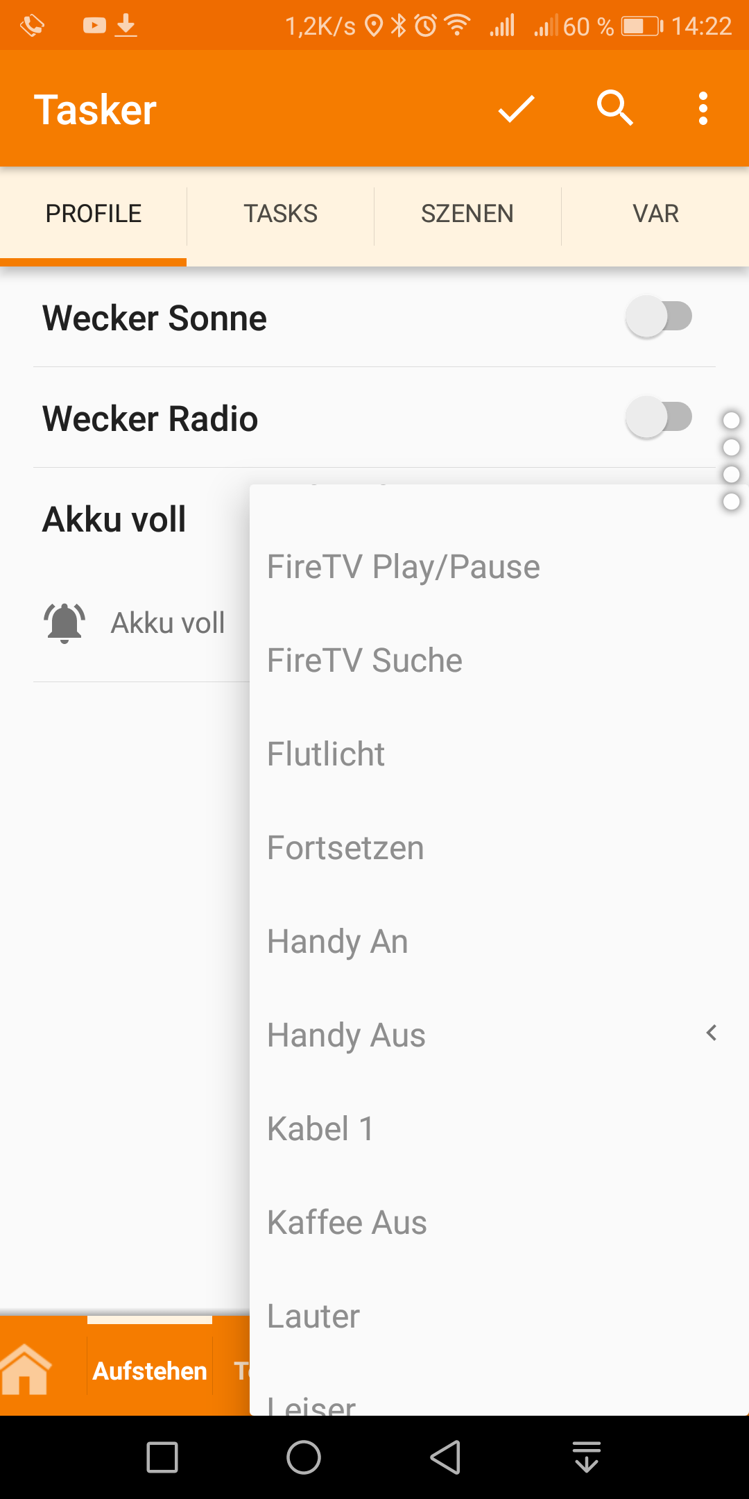 anschließend erhält man, wenn man länger auf den "Auslöser" drückt, ein Dropdownmenü woe man dann weitere Auslöser hinzufügen kann. Ich hab da z.B. mein WLAN eingetragen, und das Klingeln des Handyweckers.