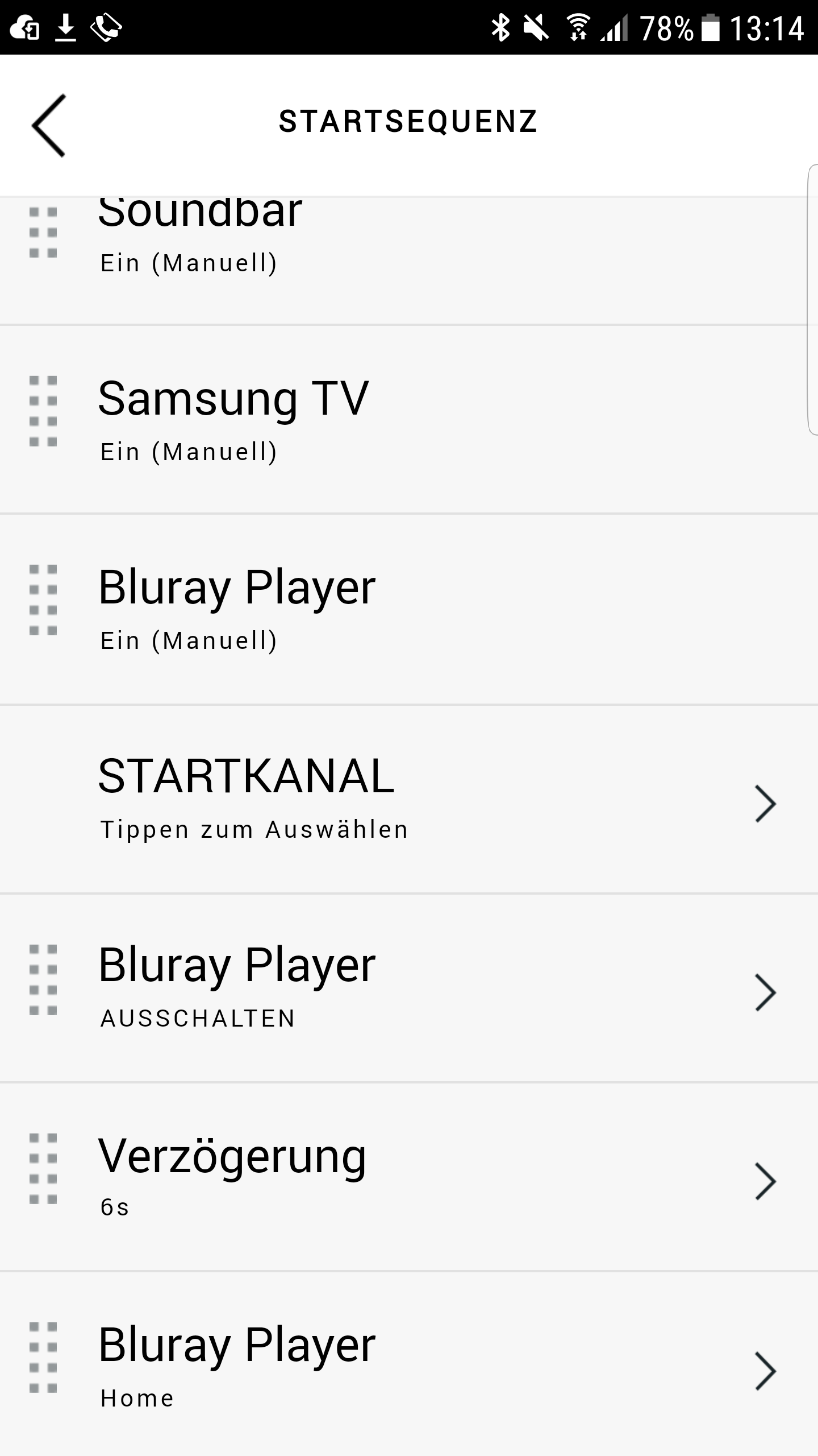 Gesteuert werden sollten die Aktionen eigentlich mittels Alexa, also völlig ohne Fernbedienung. Da jedoch nich einmal die normalen Aktionen aus der App richtig laufen, ist das die zweite Baustelle. Ich nutze die Harmony Smartphone App.