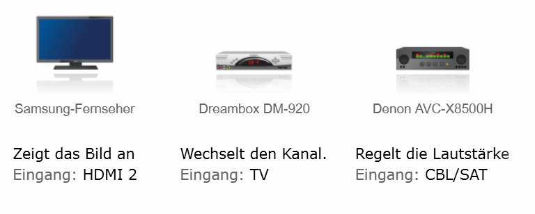 Ich möchte beim Fernsehen den Ton über den Verstärker, die Senderanwahl über die Dreambox und nicht vom Tv mit der Alexa steuern. Das Einschalten und Übertragung funktioniert. Allerdings finde ich bislang keine Möglichkeit die Senderanwahl für die Dreambox (Sat-Receiver) über die Alexa zu bestimmen. In der Harmonie kann ich nur die Favoriten für die Sender nur für den TV bestimmen. Sehe ich den Wald vor lauter Bäume nicht, oder geht das gar nicht?