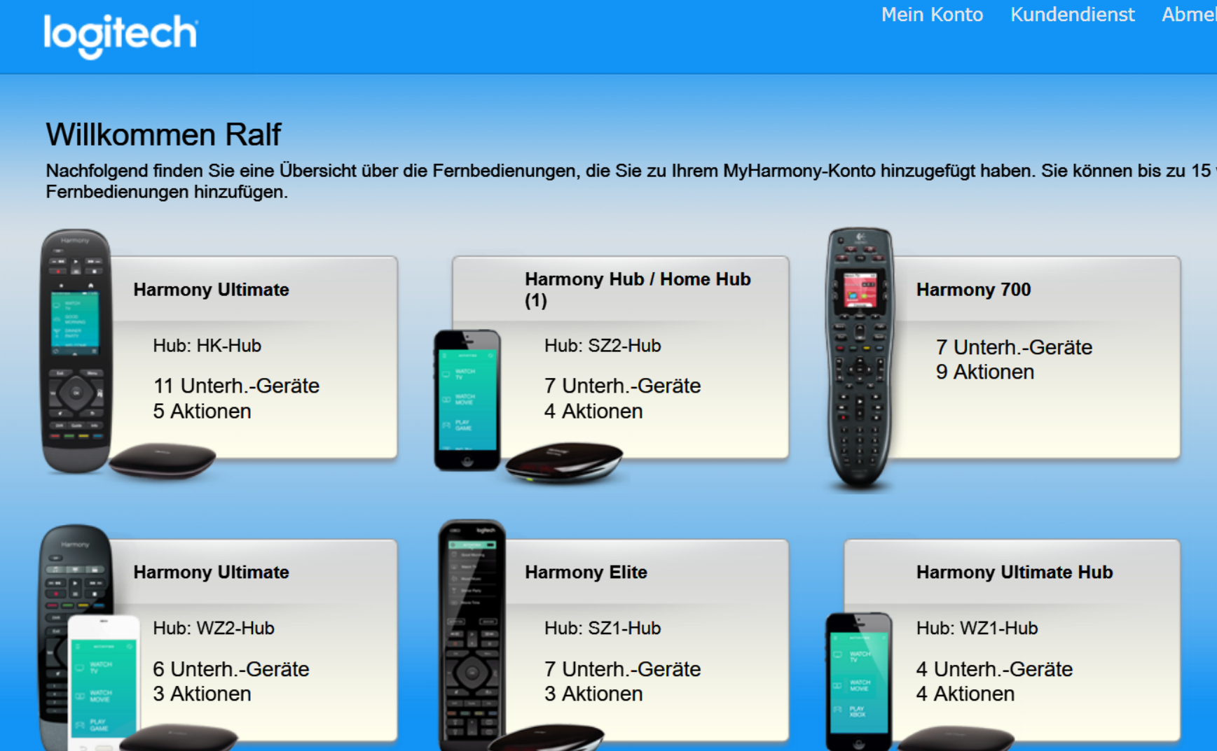 Wohnort: Etelsen1. Harmony: Elite2. Harmony: Ultimate3. Harmony: Smart ControlSoftware: MyHarmony