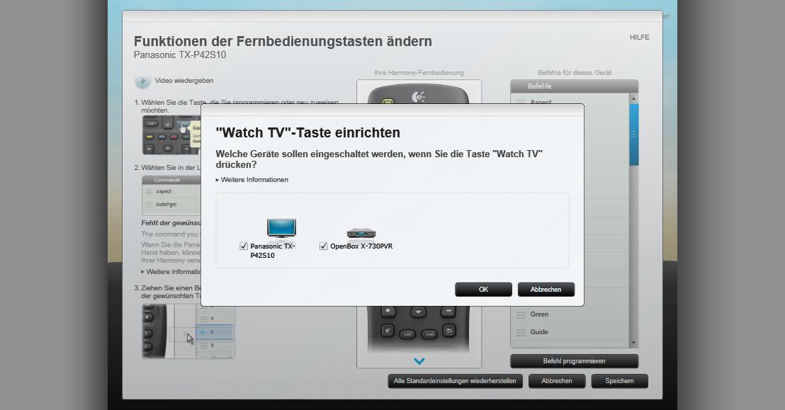 Ich kann die Geräte auswählen, die mit "Watch TV" eingeschaltet werden sollen und das war's dann auch.