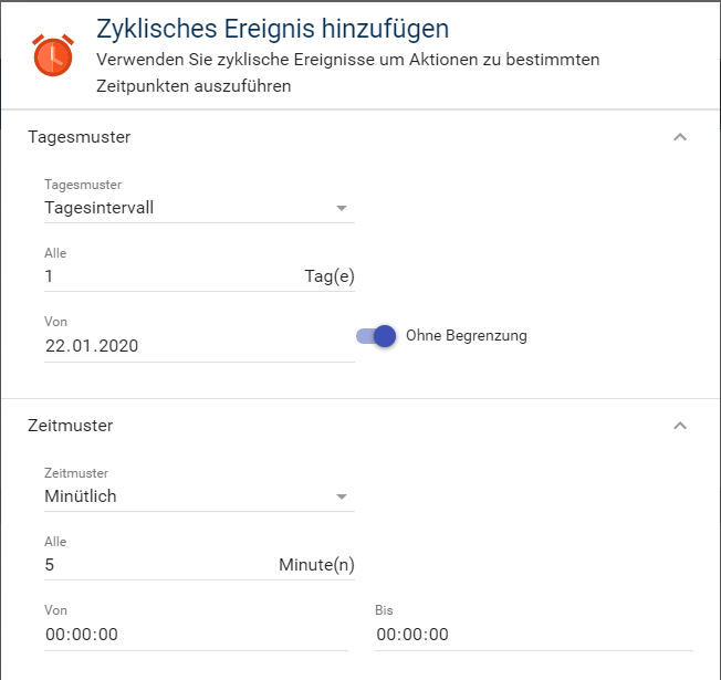 Ich selber nutze IP-Symcon, da ist das ein Zyklisches Ereignis.