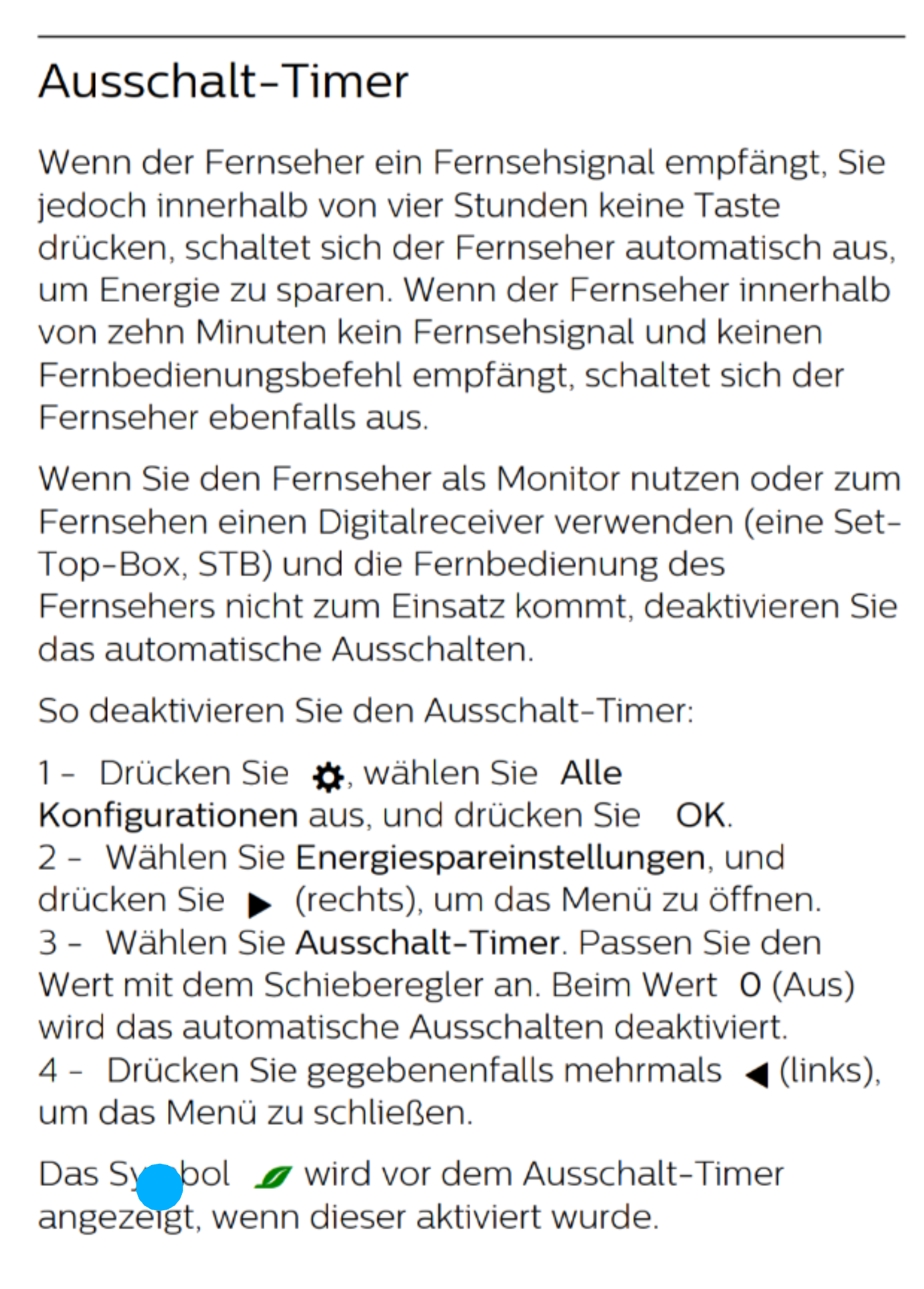 Oder einfach den Abschalttimer doch abschalten. Hatte mich schon über Deine Aussage oben gewundert, da ich den Fernseher auch mal hatte.