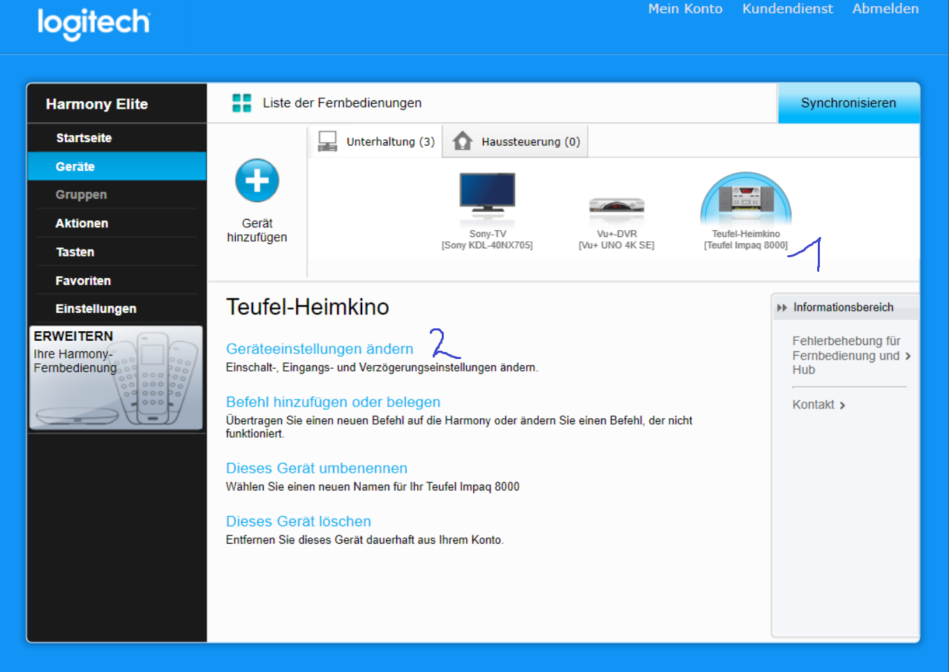 Wohnort: Etelsen1. Harmony: Elite2. Harmony: Ultimate3. Harmony: Smart ControlSoftware: MyHarmony