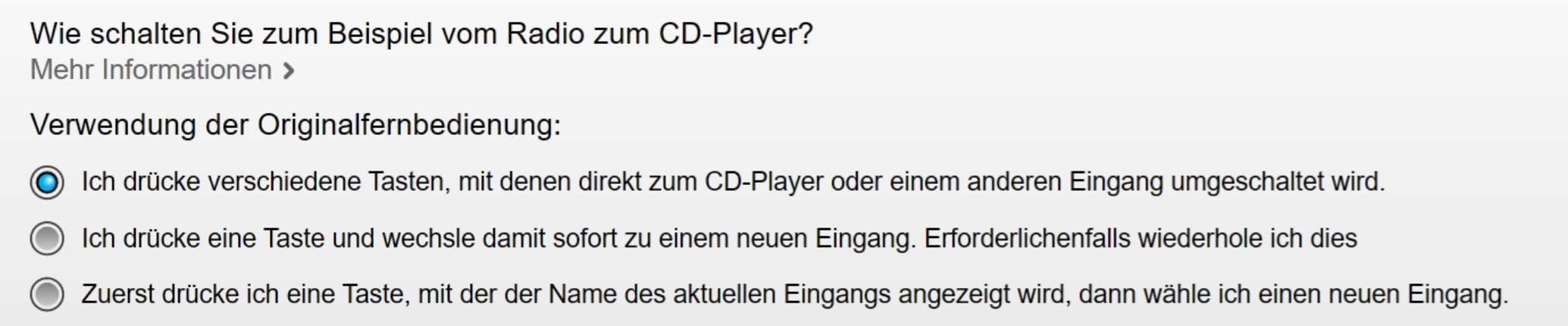 Die Harmony bietet 3 verschiedene Möglichkeiten: Die Anzahl der Eingänge und Reihenfolge muss mit dem Gerät übereinstimmen.