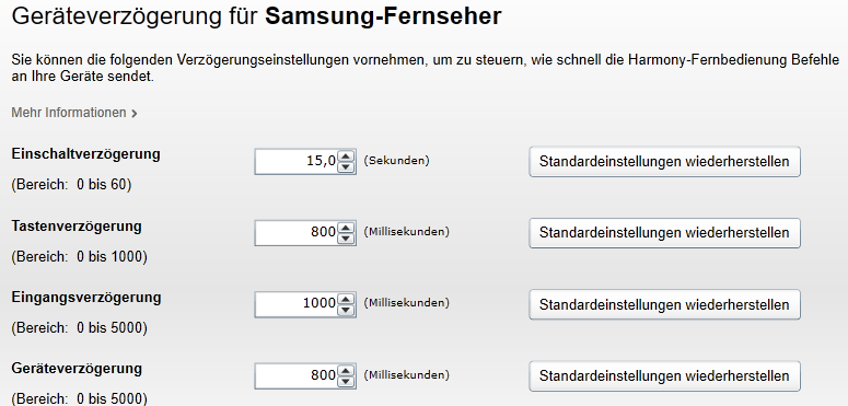 Ich habe mir eine Harmony 950 zugelegt und bediene erstmal nur meinen Samsung TV (UE50J6250) sowie meinen Denon AVR X1300 und einen Telekom Receiver (Receiver 401). Die Bedienung im "Device-Mode" ist unproblematisch und funktioniert einwandfrei.