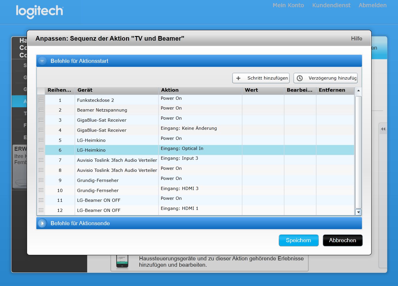 Wenn ich aber nun die Aktion einrichte muss ich ja am Anfang alle Geräte anhacken die ich verwenden möchte also auch den Grundig TV und den Beamer. Nun sage ich das bei Aktionsstart der Grundig TV als Anzeigegerät verwendet werden soll.