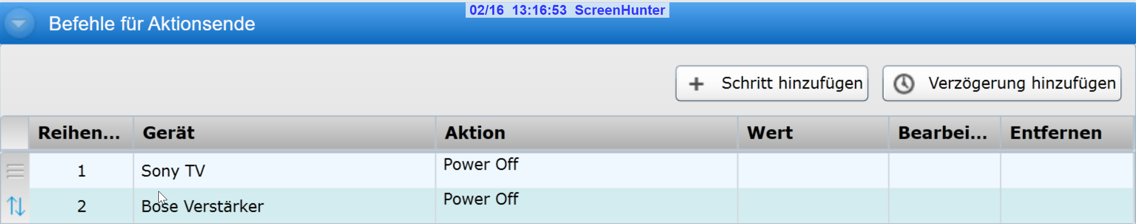Wenn ich das unter Geräteinstellungen so eintrage, habe ich zwar keine Aktion beim einschalten "Soundbar an", bei Aktionsende gibt es aber immer noch "Soundbar Power Off".