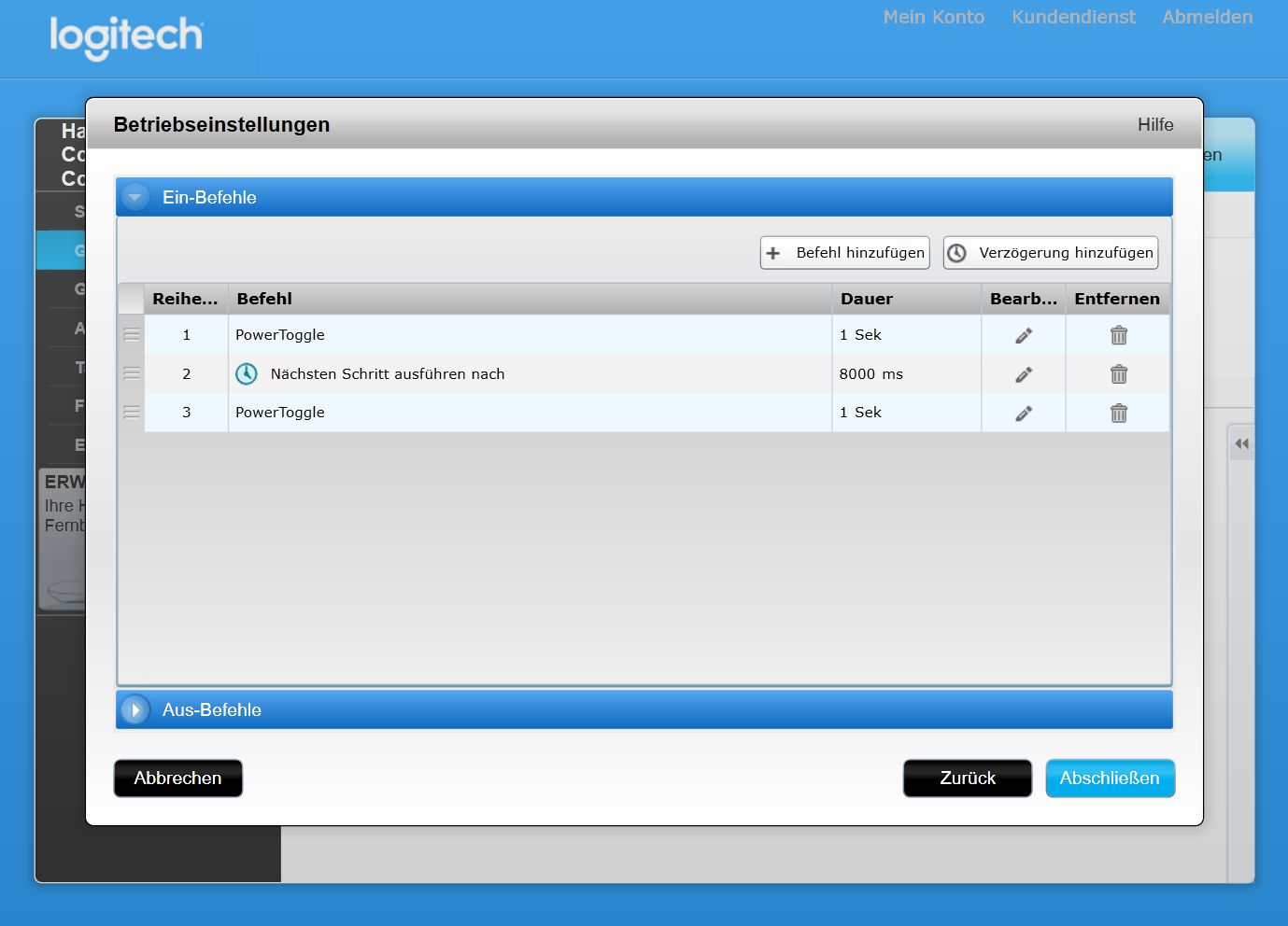 Komischerweise hatte ich das ja schon mal am laufen und da hat es funktioniert. Nun hatte ich vor einiger Zeit eine echten "Power ON" "Power OFF" Befehl mit Logitech zusammen gesucht und nicht gefunden, dabei ist natürlich alles durcheinander gekommen.