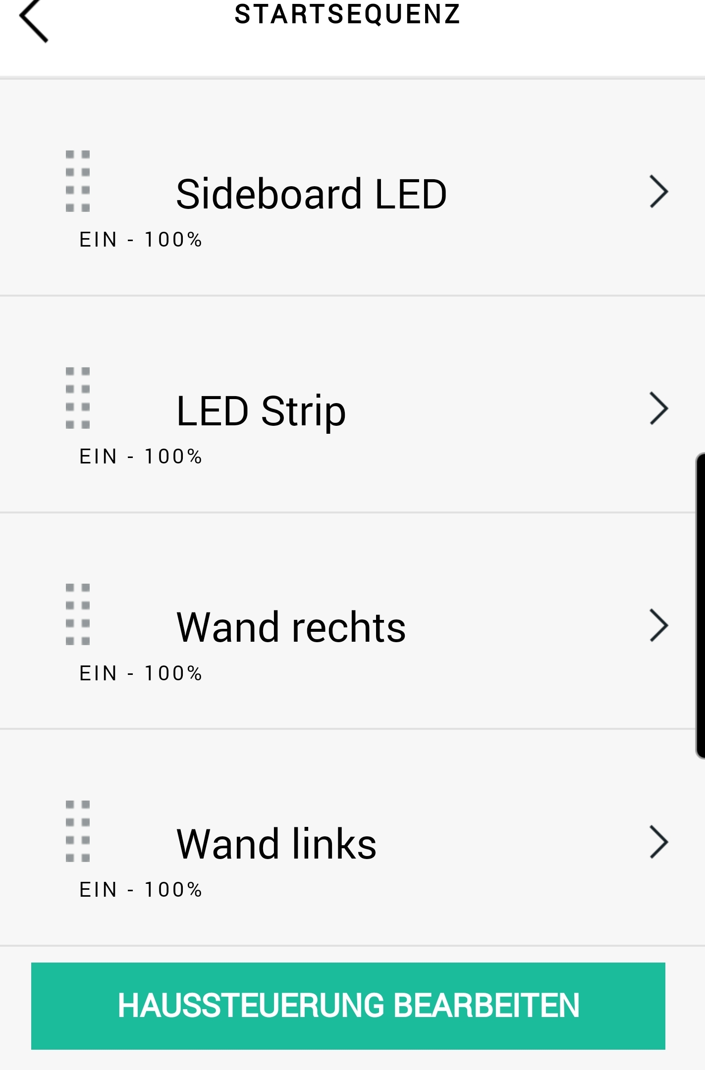 Laut Übersicht in der App stehen 4 Leuchten auf EINSCHALTEN. Nur die beiden Wandlichter gehen dann an.