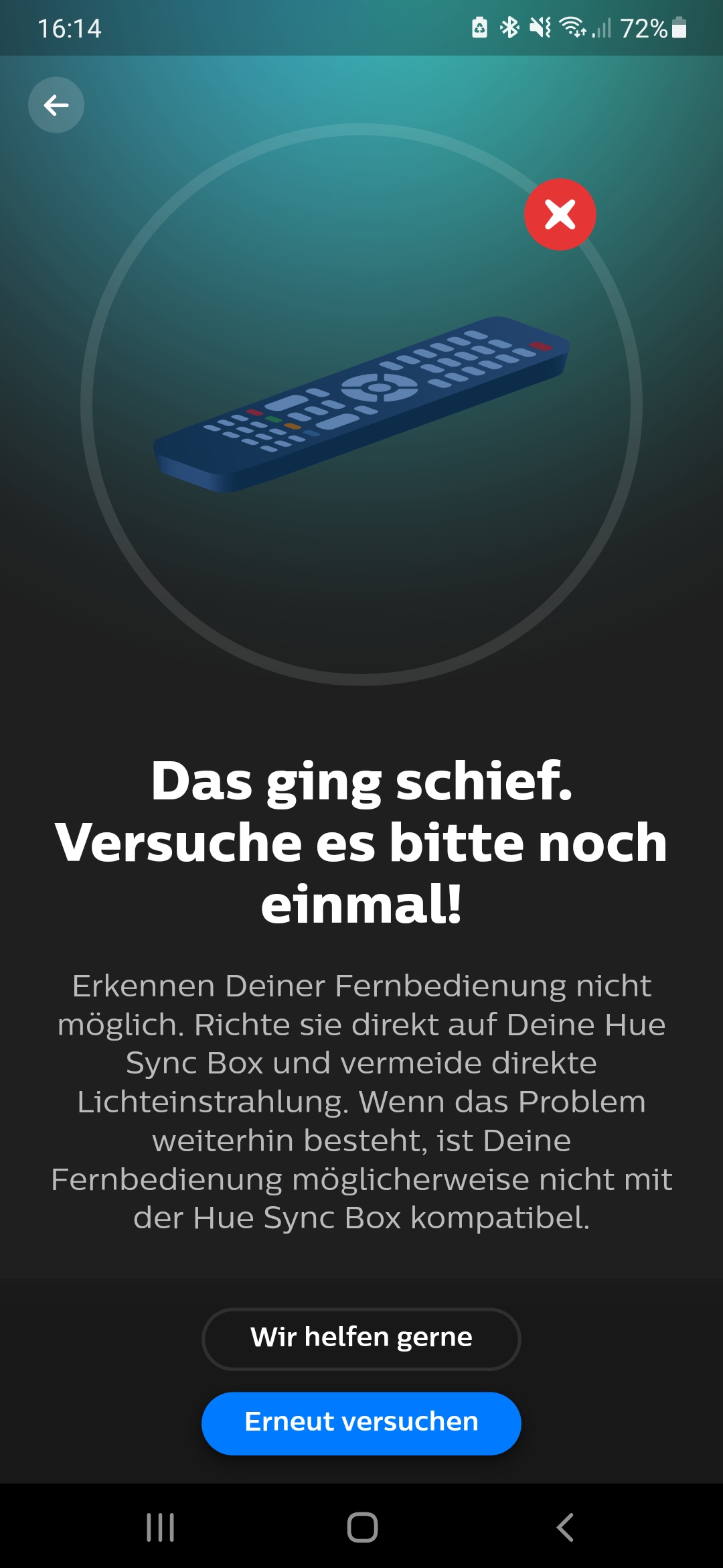 Da dies bei mir nicht funktioniert, gehe ich leider von einem defekt, eventuell am Infrarotsender der Hue SyncBox aus.