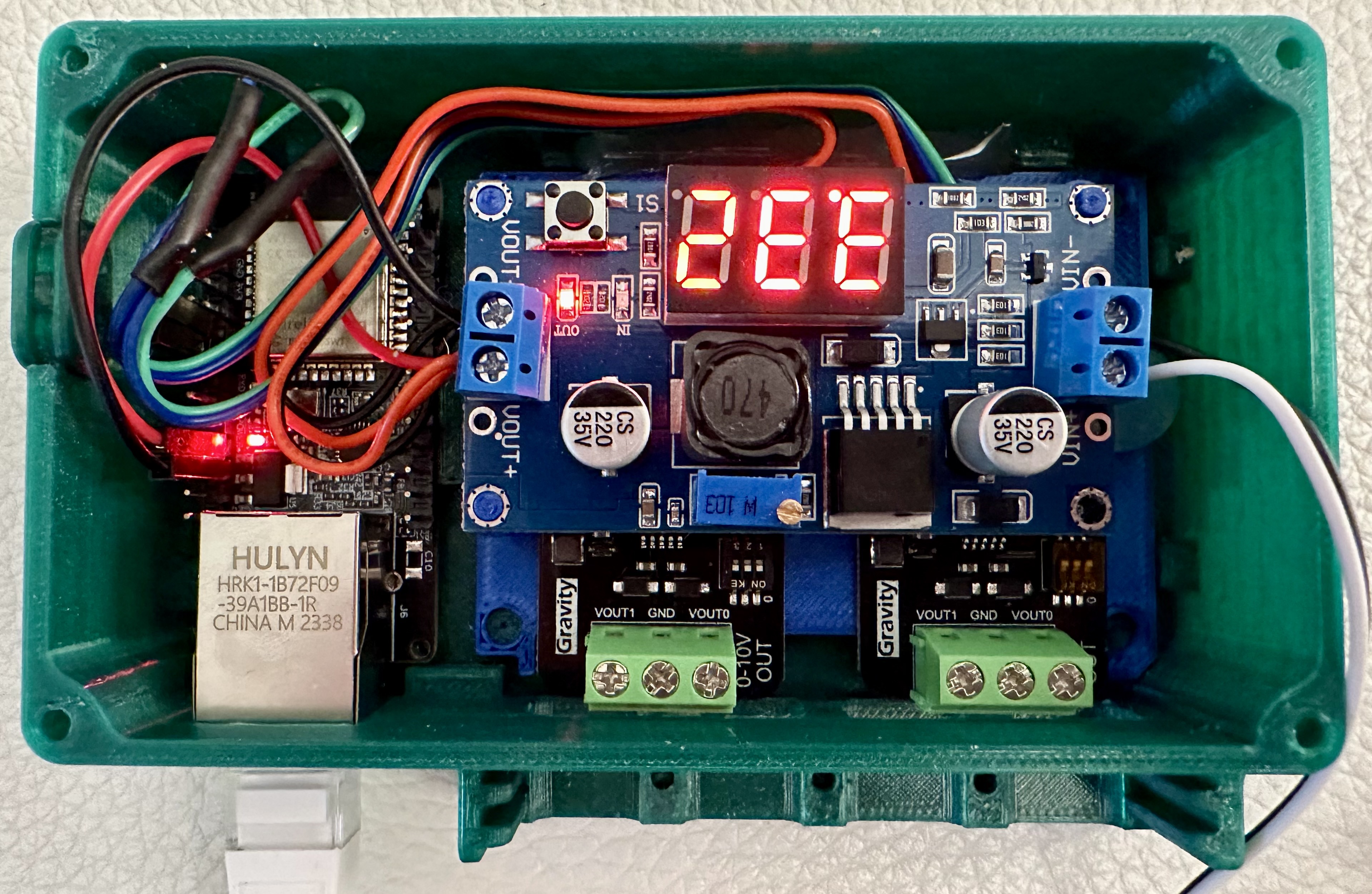 Ein Entwickler ist darauf angesprungen und hat sofort die Implementierung eines 0-10V Moduls (DAC) realisiert. Nun habe ich eine Einheit mit einem ESP32 Board mit LAN Anschluss und 2 DACs gebaut - jeder DAC hat 2 schaltbare Kanäle, also habe ich 4 zur Verfügung.Aktuell denke ich an eine selbstgebaute Lösung mit einem Wemos - ähnlich wie bei meinen CO2 Sensoren, nur mit einem 0-10V Modul zusätzlich.
