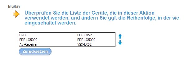 [img]http://www.harmony-remote-forum.de/images/harmony/arrowbullet.gif[/img] [b]Harmony FAQ[/b] | [url=http://www.harmony-remote-forum.de/viewtopic.php?f=35&t=3716] [color=#008000]Einschaltreihenfolge der Geräte[/color][/url]