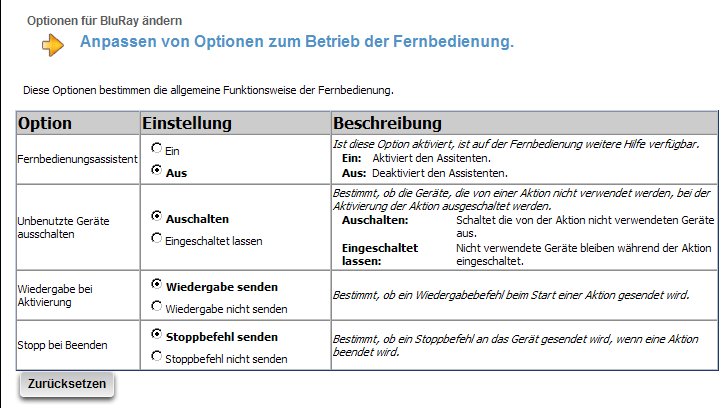 Harmony FAQ | Tips zum Thema Eingangs-WahlBetriebseinstellungen anpassen: Hier legen wir fest, ob und wie die Harmony das Gerät ein- und ausschalten soll. Hier finden wir auch die besagte Duration. Siehe auch:
