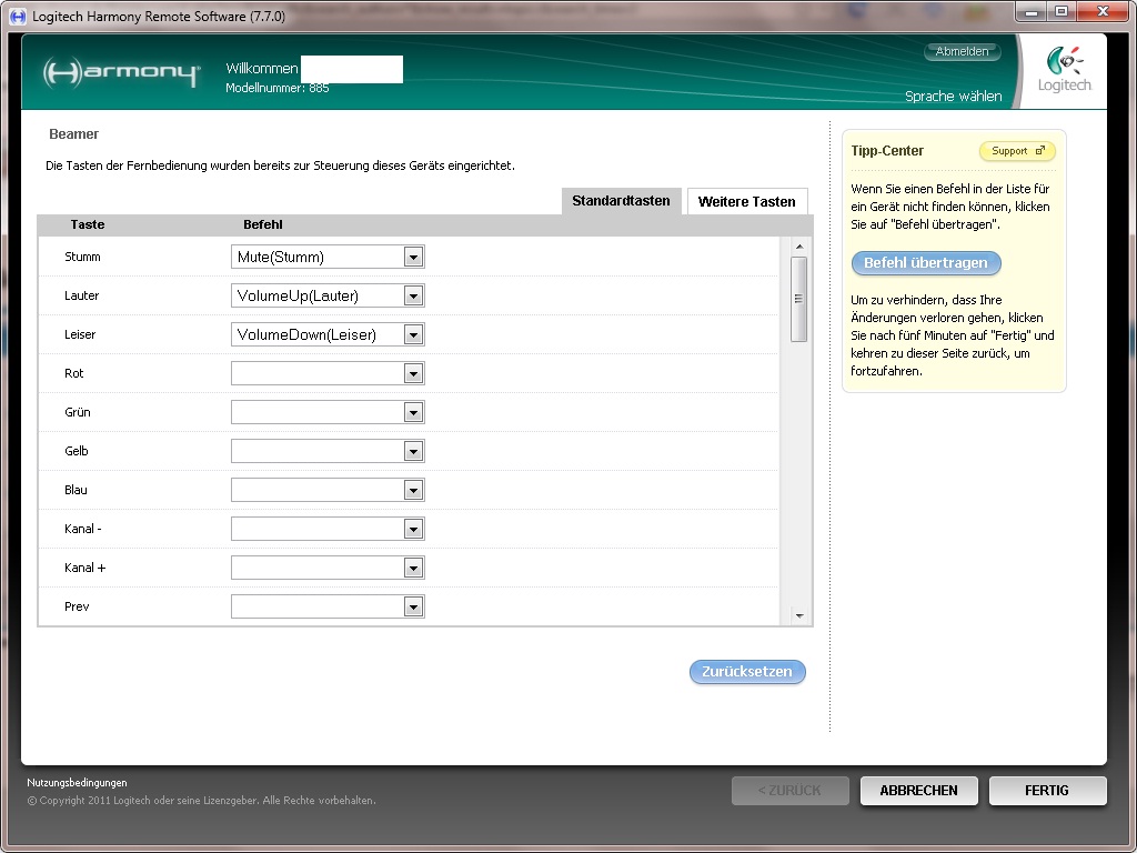 Harmony 900 Hard&Soft Tastenbelegung ändern geht nicht