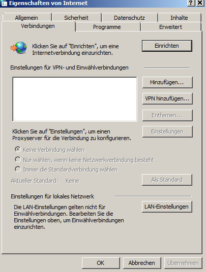 Wie auch immer, ich hab Dir mal ein paar Screen-Shot's meiner Internet/LAN/Netzwerk-Einstellungen zusammen gestellt.