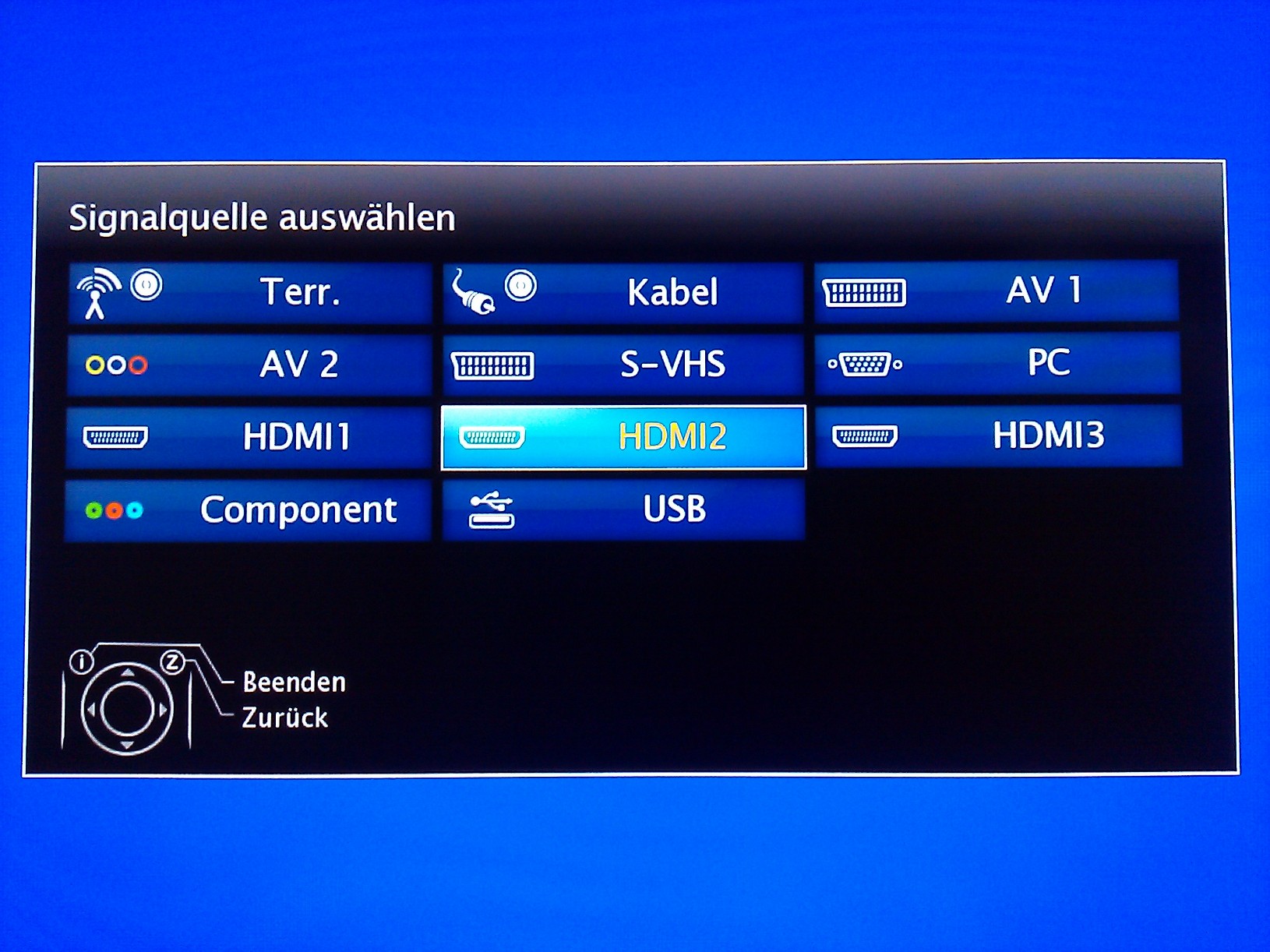 was passiert wenn du das Menü aufgerufen hast und du dann die AV-Taste nochmal drückst? Gejt die Auswahl dann um einen Eingang weiter?