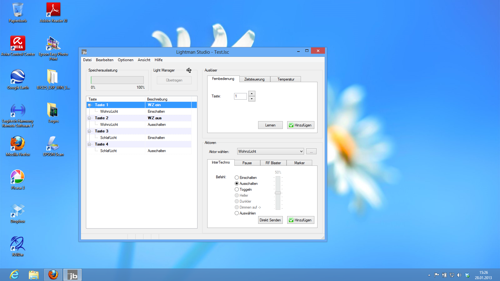 Nicht, wenn Du keine Lichtszene im Lightman Studio angelegt hast.gerry27 hat geschrieben: Wenn ich nun auf der H900 1 drücke müsste doch das Licht angehen ...