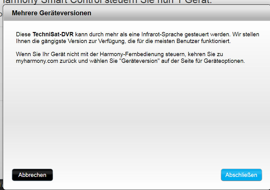 Sollte ein Gerät mehrere Befehls-Sätze in der Datenbank haben, wird euch dies mit diesem Fenster mitgeteilt: