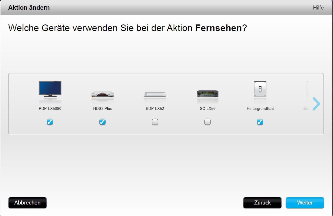 Zunächst wählen wir das gewünschte Gerät oder die gewünschte Aktion aus.