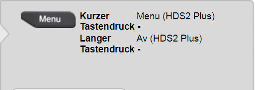 Nachher: Ich habe nun beim langen Tastendruck den Befehl "Av" hinterlegt. Drücke ich nun die Taste "Menü" kurz, wird der Befehl Menü" gesendet. Drücke ich sie aber lange, wird der Befehl "Av" gesendet.
