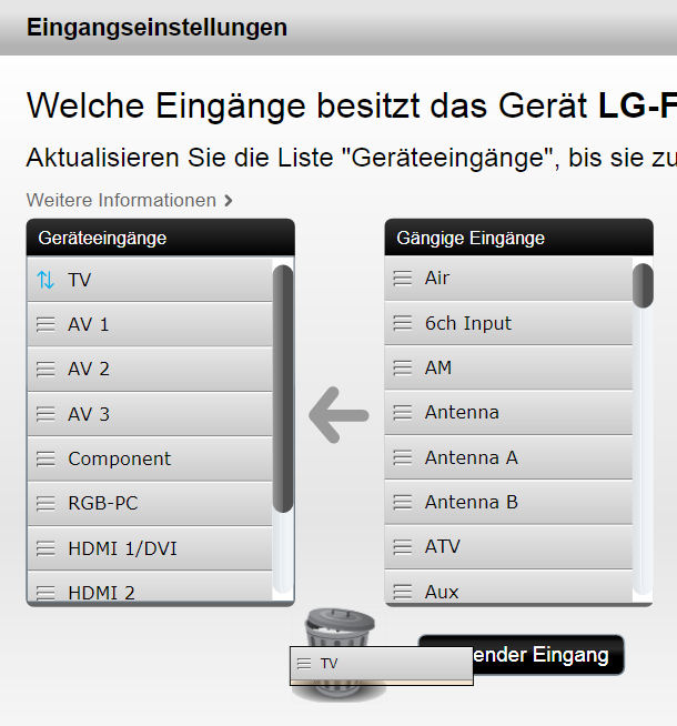Und so sähe die Korrektur des Eingangs TV aus.