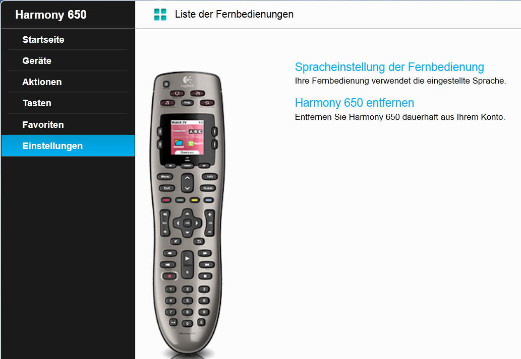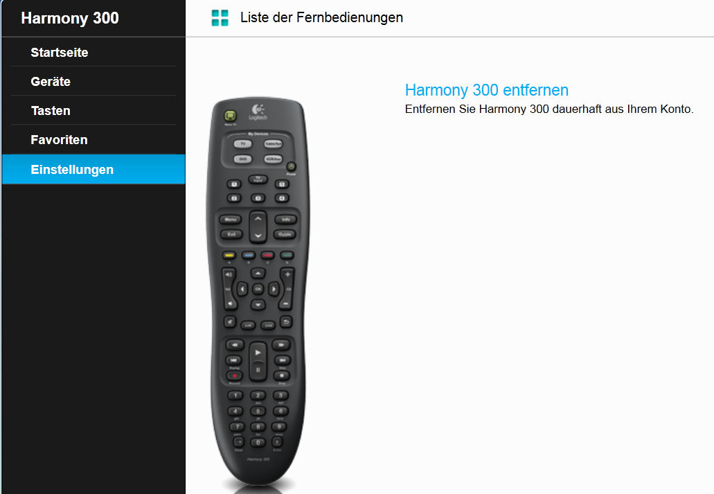 Durch einen Klick oben auf "Liste der Fernbedienungen" geht's direkt wieder zurück zur Auswahl-Seite.