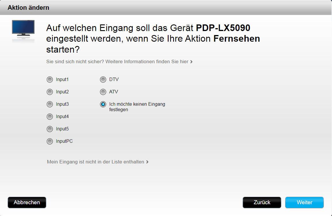 Logitech "meint", dass für Geräte mit direkten Eingangs-Befehlen hier keine Änderungen erforderlich sind und blendet daher diesen Punkt komplett aus.