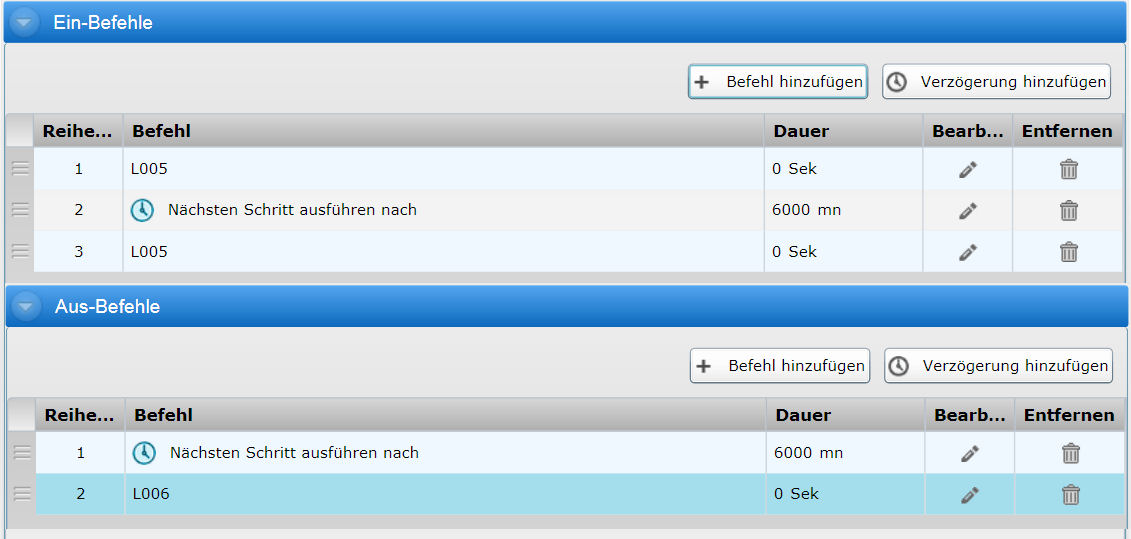 Das Ganze sieht am Ende dann so aus: Wichtig: Der zweite L005-Befehl im Einschalt-Zeig muss deshalb drin sein, damit die Wartezeit auch definitiv abgewartet wird. Fehlt der zweite Befehl, wird die Verzögerung NICHT ausgeführt.