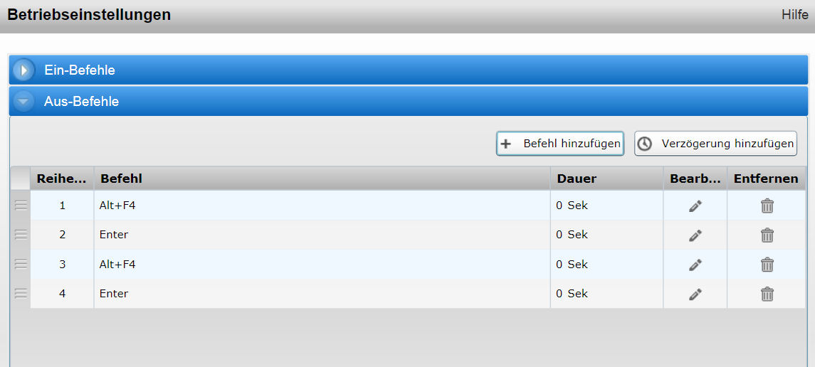 mit der Sequenz, Power-Off-Alt+F4-return-Alt+F4-return programmieren.