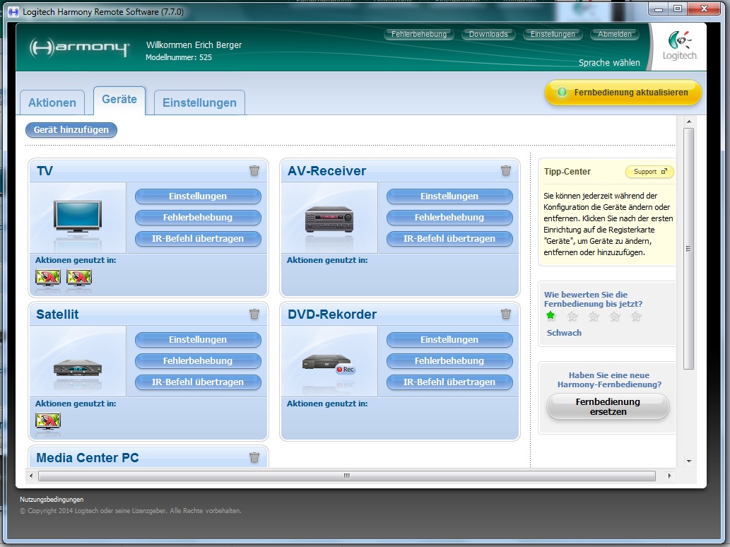Lass mich raten: Das war eine Aktualisierung innerhalb der PC-Software, durchgeführt automatisch direkt nach dem Start der Software?diverich hat geschrieben: Aufgetreten ist das Problem nachdem ich von Logitech aufefordert wurde die LogitechHarmonyRemote7.7.0-WIN-x86 zu insallieren.