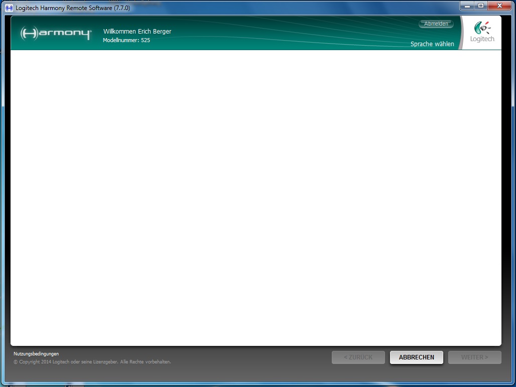Aufgetreten ist das Problem nachdem ich von Logitech aufefordert wurde die LogitechHarmonyRemote7.7.0-WIN-x86 zu insallieren. Jetzt kommt immer das Fenster in dem nur "Sprache auswählen" aktiv ist.