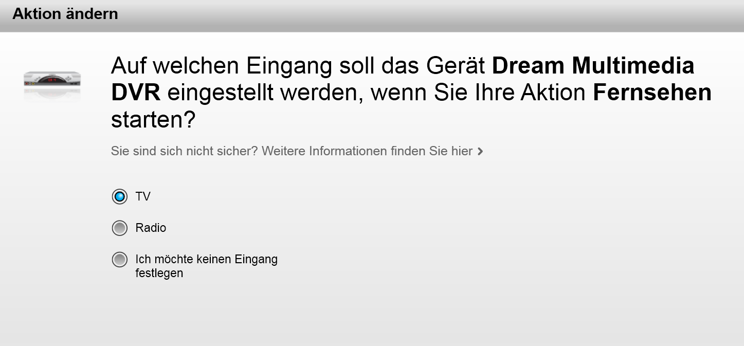 Denn -mal ehrlich- wenn Du schon die FB in der Hand hast um Kanal und/oder Lautstärke darüber zu regeln, wie lange wird's dann dauern, bis Du auch einen Aktions-Wechsel oder das komplette Abschalten darüber machst?