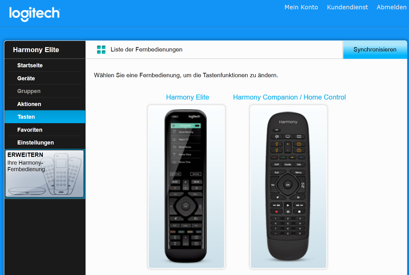 Hier ist die Ultimate die Harmony mit Hub und die wurde über "Erweiterungen" mit der Companion (ohne Hub) erweitert.