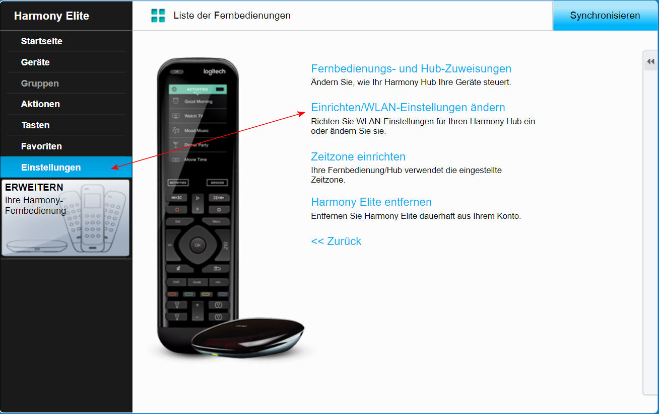 Das betr. Menü für den Hub habe ich gefunden. Da ja aber im Moment alles perfekt (ja wirklich!) klappt, lasse ich es so, da ja per WLAN die Fernbedienung nicht heben muss, was natürlich bequemer ist.