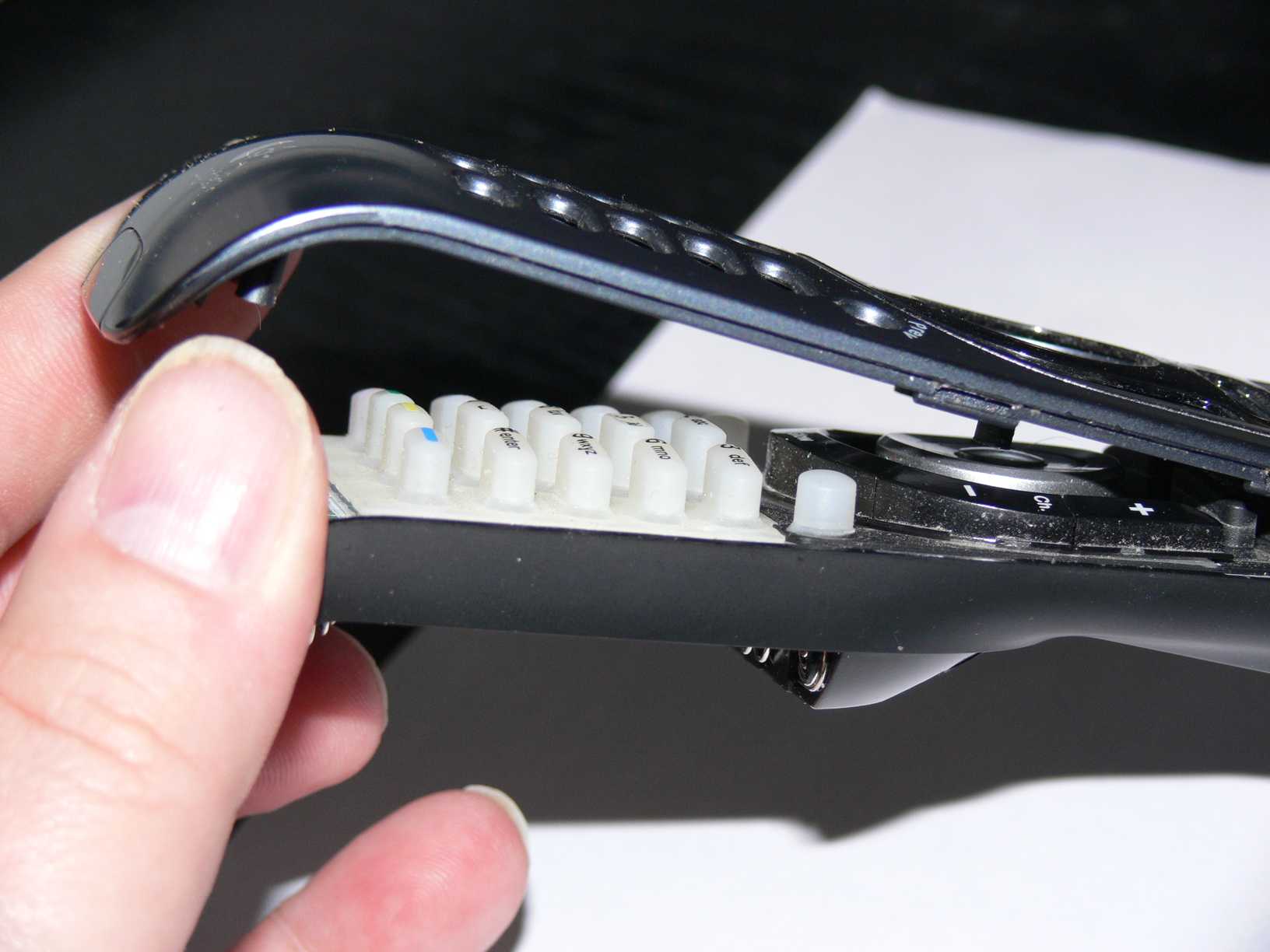 Obwohl der thread schon etwas älter ist, auch von mir ein update: Ich habe genau dasselbe Problem bei den beiden Tasten "VOL +" und "CH +" meines unglaublich preisgünstigen Einsteiger-Modells 895. Immerhin wurde mir seitens des Service nicht vorgeworfen, dass ich ein billig-Modell hätte, sondern "nur" beschieden, dass die Garantie schon vorbei ist und ich halt Pech habe. Auseinandergebaut hatte ich sie schon, aber auch ohne Erfolg. Hättest du freundlicherweise vielleicht eine konkretere Information, was das für ein Messingstift ist und wie genau du ihn eingebaut hast? TIAThophi hat geschrieben:Hallo,