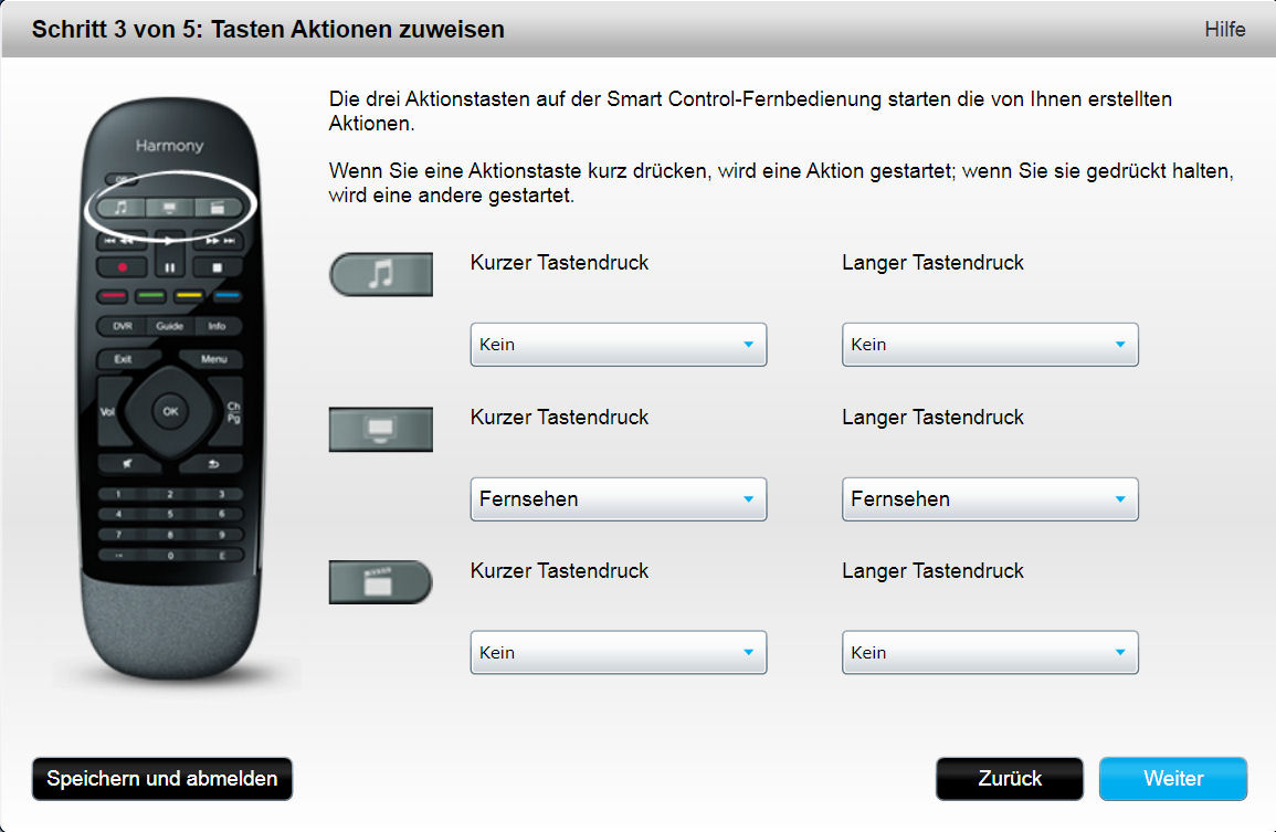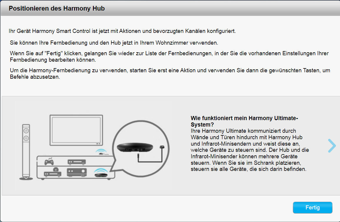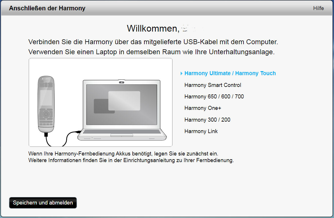 Achtung: In dieser Anleitung beziehe ich mich auf die Smart Control, weil diese alle Bereiche der Ersteinrichtung durchläuft, während andere Harmony's (z.b. die 650) einiges nicht benötigt (Beispiel: WLAN-Einrichtung).