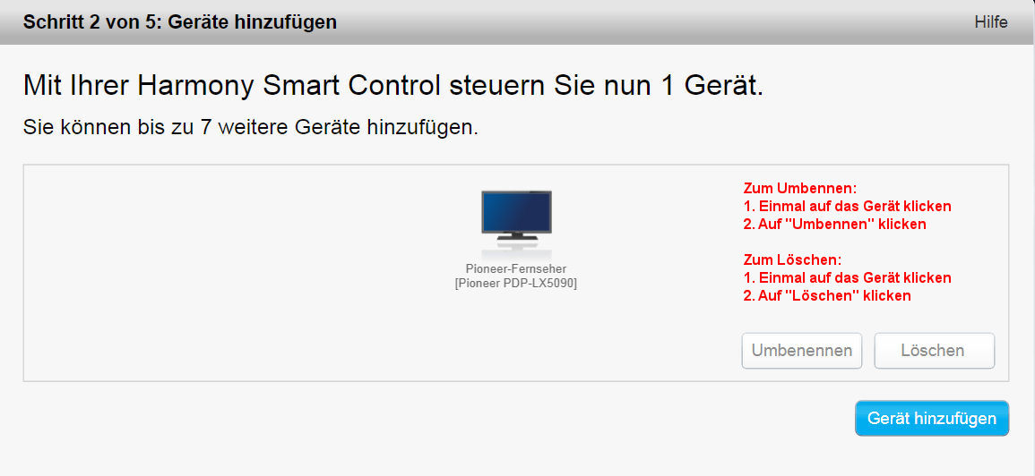 ... und erkennt die angeschlossene Harmony automatisch: