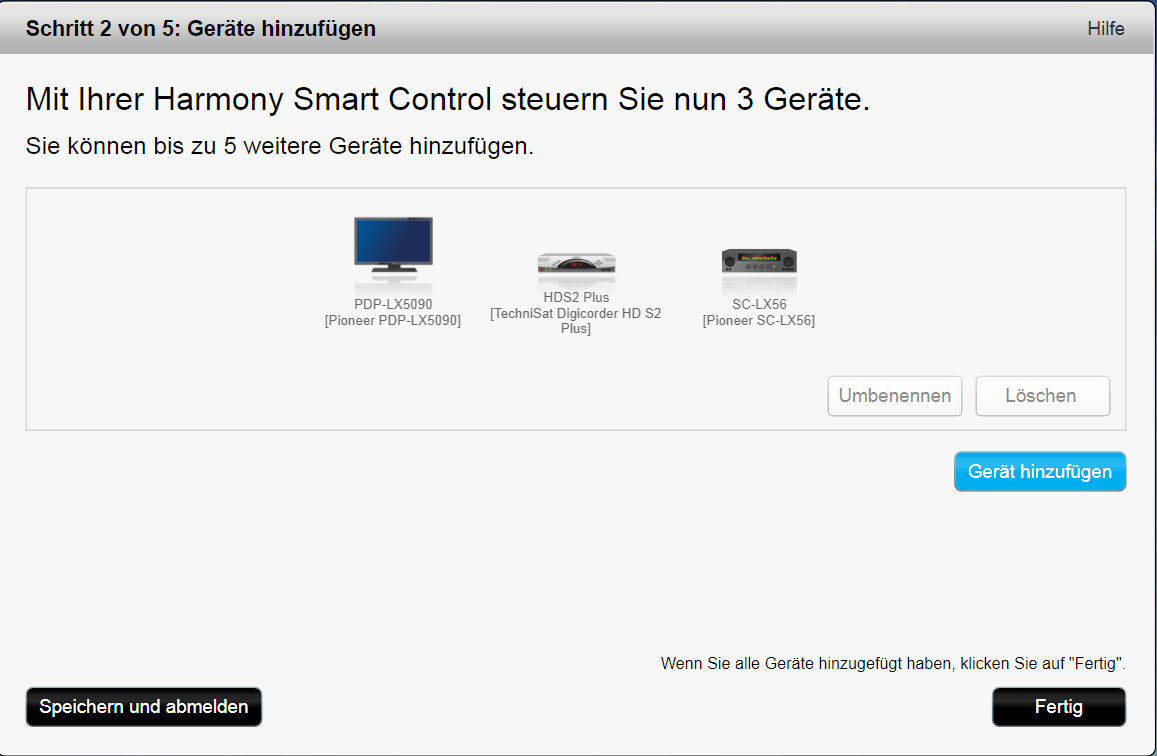 Im nächsten Schritt können Harmony's, die mit der PC-Software 7.7.0 oder in myharmony.com eingerichtet wurden, importiert werden.