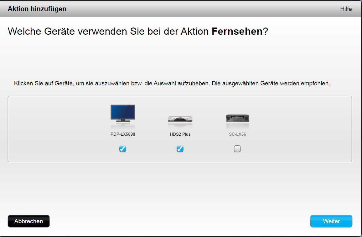 Bei der Ersteinrichtung wird immer die Aktion "Fernsehen" zwangsweise angelegt.