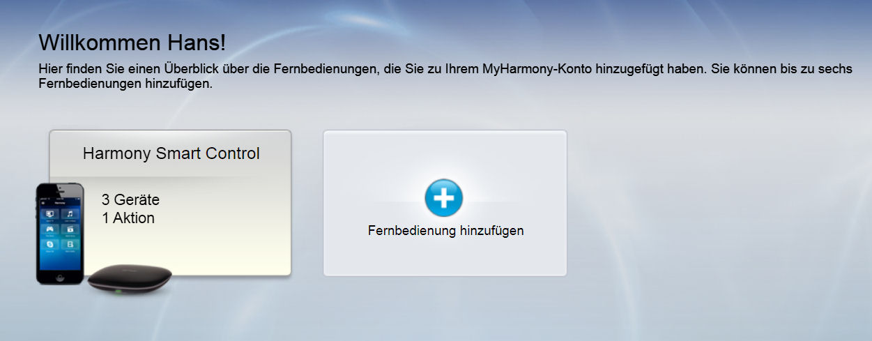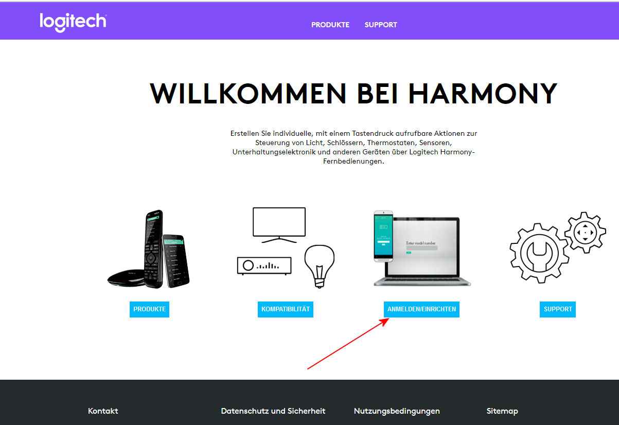 :!: Sollte die Seite nicht in Deutsch erscheinen, klickt auf diesen Link: https://www.myharmony.com/de-de/